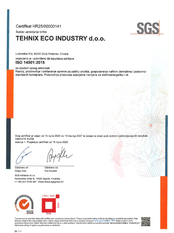 Certifikat ISO 14001: 2015