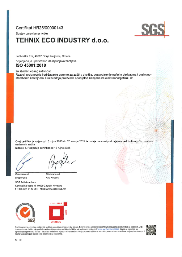 Certifikat ISO 45001:2018