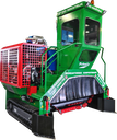 The person operating the machine is placed in a closed, glazed cabin positioned on the upper part of the machine with side access. This position of the cabin ensures high-quality visibility of the working environment. The machine moves using tracks, each of which is driven separately, which allows it to turn around its own axis.