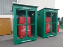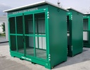 Izrađeno je iz čeličnog lima s tankvanom sa ispustom za ispust eventualno prolivenih tekućina, te prekriveno podnom pocinčanom rešetkom po cijeloj površini sa dimenzijom oka rešetke 30 x 30 x 3 mm. Cjelokupna konstrukcija spremišta izrađena za mogućnost manipulacije te su u tu svrhu izrađeni standardni prihvati za viličar te uške za prijenos dizalicom.